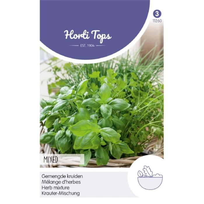 De HT Kruidenmix van Horti Tops is een veelzijdig samengestelde kruidenmix die basilicum, peterselie, bieslook, rucola en tuinkers combineert; perfect voor knusse moestuinen en potten, en geeft elke maaltijd een frisse, aromatische boost.