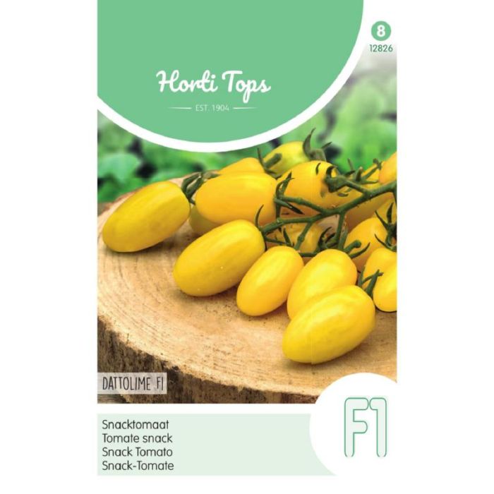 De HT Snacktomaat Dattolime F1 van Horti Tops is een zeer productieve, zoete snacktomaat met een opvallende wit‑gele kleur en een verfrissende smaak. Ideaal voor warme teelt in kas, tuin of op balkon, en dankzij meerdere ziekteresistenties vormt hij een sterk gewas.